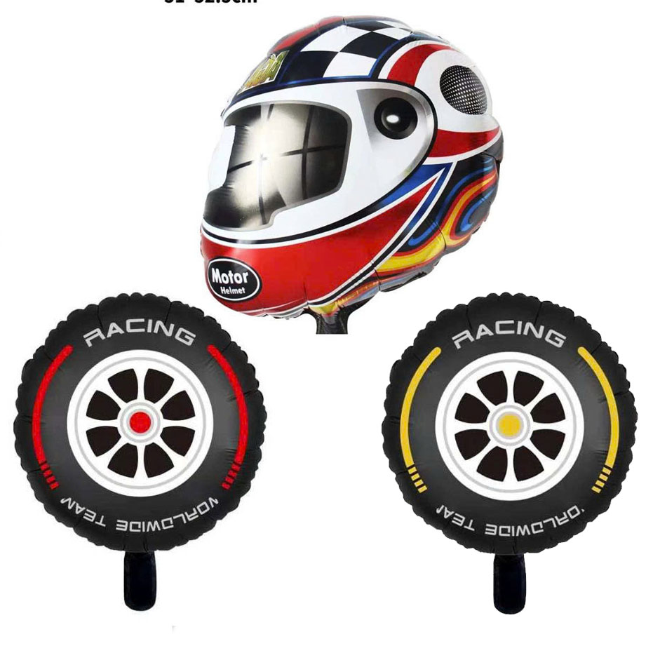 Size đại Bóng kiếng trang trí sinh nhật thôi nôi chủ đề hoạt hình mũ bảo hiểm, bánh xe ô tô